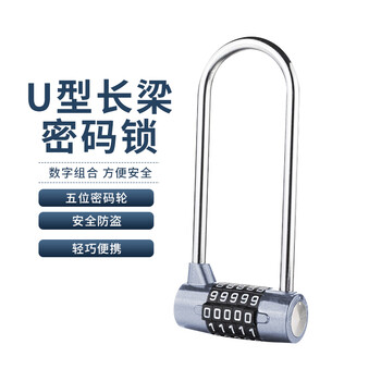 飞尔(FLYER)U型长梁锌合金密码锁 柜子抽屉防盗锁 大门仓库户外防水防锈安全挂锁【银色5位密码锁】