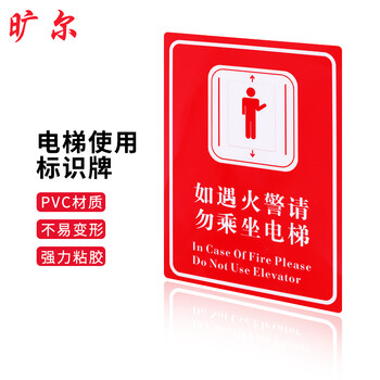 旷尔 电梯使用须知标识牌 安全警示指示牌 警告提示标示贴【15x20cm 如遇火警】10张起批
