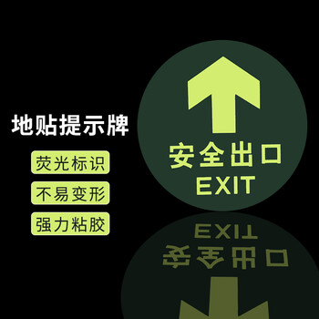 旷尔 夜光地贴标识牌 消防通道安全警示荧光指示牌【安全出口 圆A款】10张起批