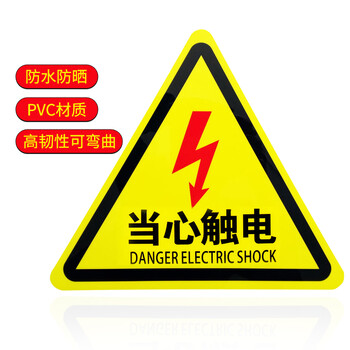 旷尔 三角形安全标识牌 注意警示标示贴【5cm 当心触电 红闪电】10张起批