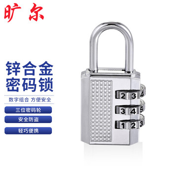 旷尔 密码挂锁 小号3位密码锁挂锁 箱包背包锁抽屉储物柜锁【银色】10把起批