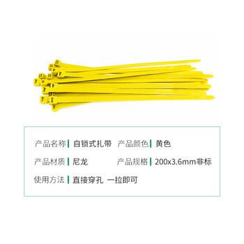 飞尔(FLYER)黄色尼龙扎带 主机装机 园艺线缆 桌面理线束线捆扎绑带【非标 200×3.6mm 500条】