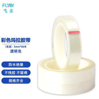 飞尔(FLYER)pet绝缘阻燃高粘玛拉胶带 变压器线圈耐高温划线定位标识彩色胶带【透明 5mm×66m】20卷起批