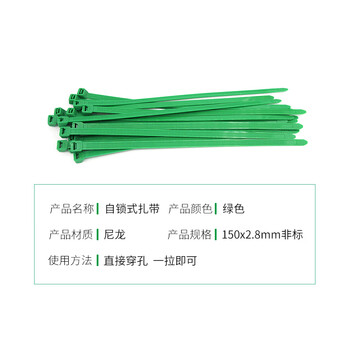 飞尔(FLYER)绿色尼龙扎带 主机装机 园艺线缆 桌面理线束线捆扎绑带【非标 150×2.8mm 500条】