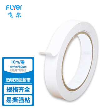 飞尔(FLYER)普通双面胶带 加粘办公文具手工薄款双面胶带透明【10毫米×10米】20卷起批