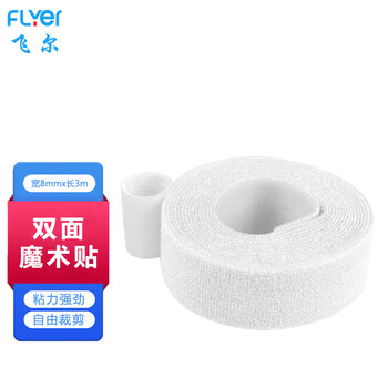 飞尔(FLYER)双面背靠背魔术贴 数据线理线带 自粘捆绑带【白色8mm宽 3m长】10卷起批