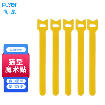 飞尔(FLYER)针形背对背魔术贴扎带 彩色自粘捆绑带 尼龙魔术贴【黄色猫型 12x150mm】200条装
