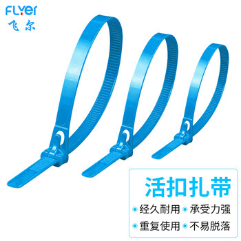 飞尔(FLYER)活扣尼龙扎带 多功能理线带绑带 专业自锁式标签束线带100条【蓝色 7.5x600mm】