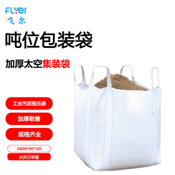 飞尔(FLYER)吨袋 加厚结实防漏新料工业吨包 太空袋固废沙子集装袋【4吊兜底100×100×120cm上进料口平底】