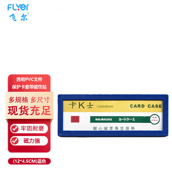 飞尔(FLYER)磁性硬胶套 透明PVC卡片袋 文件保护卡套 仓库货架标识牌 蓝色【12×4.5cm】50个起订