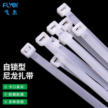 飞尔(FLYER)自锁式尼龙扎带 白色塑料卡扣束线扎线带 100条/包【4.8×250mm】