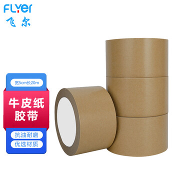 飞尔(FLYER)牛皮纸胶带 高粘可书写手撕易断遮蔽封箱打包牛皮纸胶布 宽5CM长20米【FLj005】10卷起批