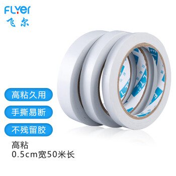 飞尔(FLYER)油性双面胶 白色棉纸工业透明胶带泡棉热熔高粘油性双面胶 50卷起批【高粘0.5cm×50米】