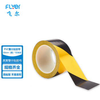 飞尔(FLYER)PVC警示胶带 斑马线车间地面标识 彩色标识划线地板胶带【黑黄 20mm×33m】10卷起批
