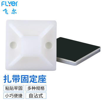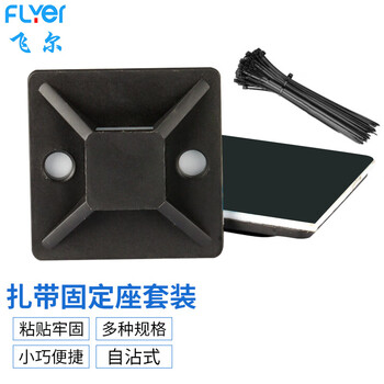 飞尔(FLYER)自粘式扎带固定座 吸盘塑料定位片【20×20mm 绿胶+2.5×150mm 扎带 黑色 各100只】