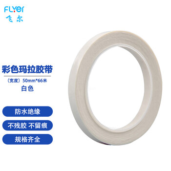 飞尔(FLYER)pet绝缘阻燃高粘玛拉胶带 变压器线圈耐高温划线定位标识彩色胶带【白色 50mm×66m】5卷起批