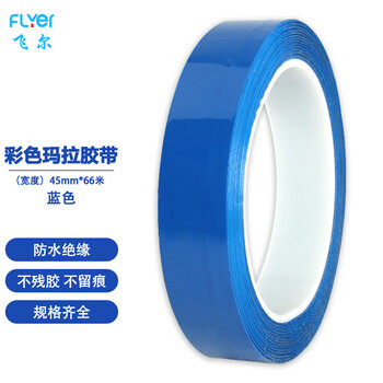 飞尔(FLYER)pet绝缘阻燃高粘玛拉胶带 变压器线圈耐高温划线定位标识彩色胶带【蓝色 45mm×66m】5卷起批