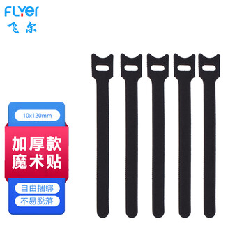 飞尔(FLYER)魔术扎带 彩色捆绑带 背对背魔术贴 电线理线带【加厚款黑色T型 10x120mm】200条装