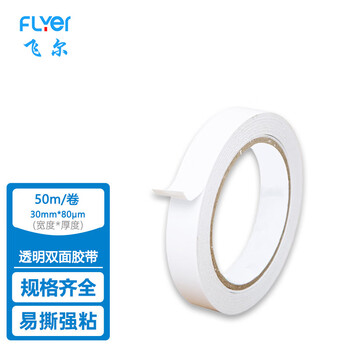飞尔(FLYER)普通双面胶带 加粘办公文具手工薄款双面胶带透明【30毫米×50米】5卷起批