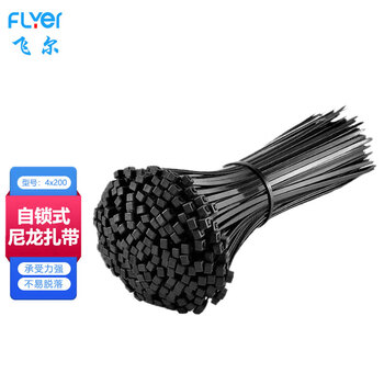 飞尔(FLYER)尼龙扎带 塑料绑带 捆扎带 束线扎线带 黑色 国标 4×200 500条/包【FL009z】