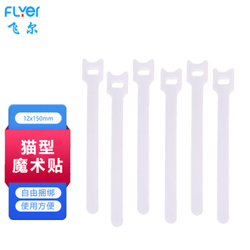 飞尔(FLYER)针形背对背魔术贴扎带 彩色自粘捆绑带 尼龙魔术贴【白色猫型 12x150mm】200条装