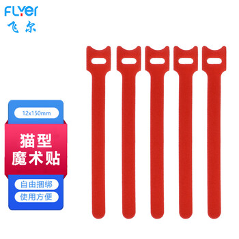 飞尔(FLYER)猫头型魔术贴扎带 T形背靠背数据线收纳带 印字魔术贴【黑色T型 12x250mm】200条装