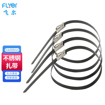 飞尔(FLYER)不锈钢扎带 黑色自锁式 束线带 金属钢带 100根/包【5.6×500MM】