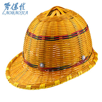 劳保佳 安全帽 竹帽子 夏季建筑施工防砸竹编帽 工人防晒透气劳保帽 小沿加钢板旋钮