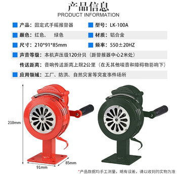 者也 应急防灾疏散演习报警器工厂矿山防汛报警器 铝合金固定式手摇警报器 绿色