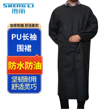 胜丽 围裙工作服 PU长袖男女罩衣全身 围裙厨房 防水防油蔬菜水产加工洗车PWQQS 黑色 1件装