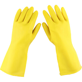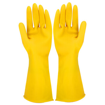海斯迪克 HKW-93 乳胶手套 加厚劳保手套 橡胶手套清洁洗碗手套 黄色1双 XL