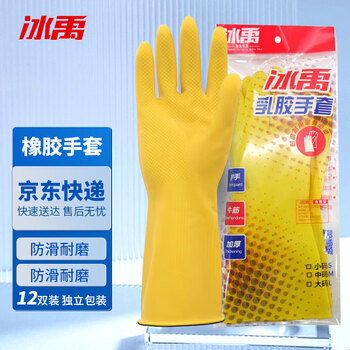 冰禹 BY-777 乳胶手套 橡胶手套 清洁防护手套 黄色乳胶长款M码 12双