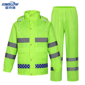 金诗洛 KSL139 交通指示雨衣套装 劳保施工 分体兰格条绿色170/L(可定制)