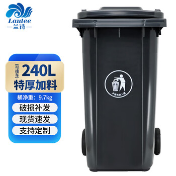 兰诗(LAUTEE)YY- 240B 可挂车户外环卫物业商用大号垃圾桶 灰色240L