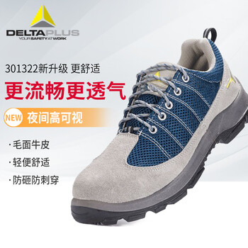 代尔塔(Deltaplus) 301322/301232安全鞋毛面牛皮防静电防穿刺防砸透气定做灰蓝 42码