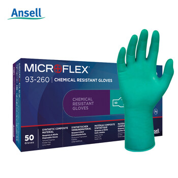 安思尔ANSELL 93-260 一次性丁腈橡胶防化手套 耐酸碱刺激性化学物质 触觉敏感灵活贴合 定做 L码 50只/盒