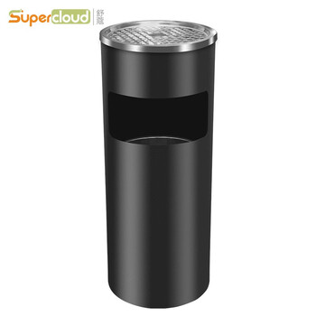 舒蔻酒店大堂不锈钢垃圾桶带烟灰缸宾馆立式烟灰桶电梯口走廊吸灰桶烟灰柱灭烟桶烟灰桶圆桶 圆柱桶【烤漆黑】