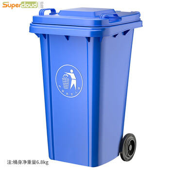 舒蔻(Supercloud) 240L户外大垃圾桶大号带盖户外环卫商用酒店厨房垃圾分类加厚大容量塑料室外物业 蓝色