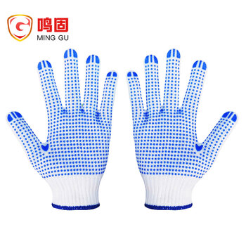 鸣固点塑手套塑料防滑手套加厚耐磨涂胶手套600g 蓝色 1付装