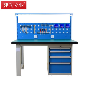 建功立业 重型工作台 钳工台1500*750*800+620mm重型钳工操作台检验桌 211594四抽带挂板灯板