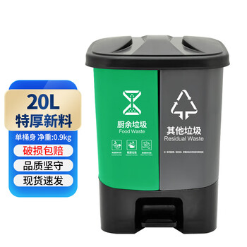 兰诗(LAUTEE)YJ-B042 新国标脚踏分类双格垃圾桶 商用连体双桶垃圾桶 20L绿灰