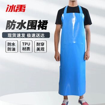 冰禹 劳保围裙 PVC防水围裙 防油耐酸碱围裙 清洁工作 蓝色TPU 可定制 BY-3051