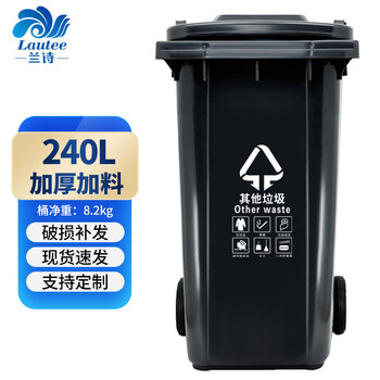 兰诗(LAUTEE)户外垃圾桶 240L灰色大号 物业环卫环保分类垃圾箱 其他垃圾LJT2218