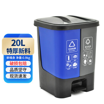 兰诗(LAUTEE)YJ-B042 脚踏分类双格垃圾桶 商用连体双桶垃圾桶 20L蓝灰