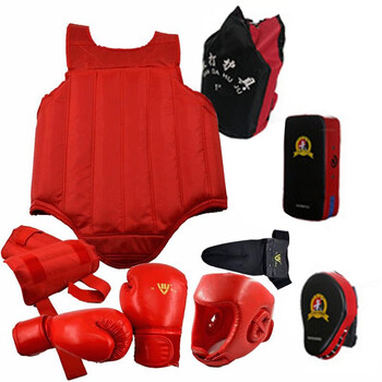 雅恪尚 训练搏击格斗护具护头护胸护腿护裆拳击手套护具散打护具套装 八件套 护具红色
