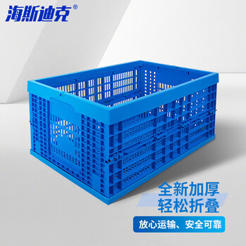 海斯迪克 HK-509 塑料折叠筐 加厚蓝色折叠周转筐 果蔬配送摺叠框塑胶折叠筐 600*400*360mm(无盖)