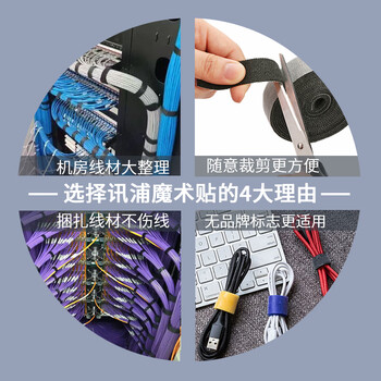 讯浦 魔术贴扎带 布扎带 扎线带 中性无LOGO 黑色25M长1CM宽25米 XZ-10-25H