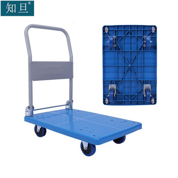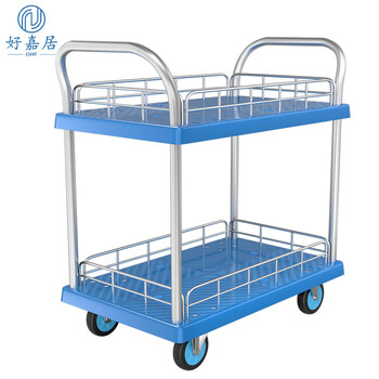 好嘉居双层小推车拉货手推车搬运车轻音餐车清洁车塑料平板车 四角加固双层车大号 载重300kg