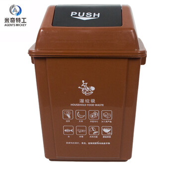 米奇特工 分类垃圾桶 干湿分离 箱 大号摇盖塑料垃圾桶 咖啡色40升弹盖桶上海标