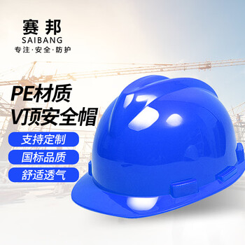 SB 赛邦 PE001V顶安全帽 新国标 防砸透气 建筑工程工地加厚电力安全帽可印字 蓝色10个装